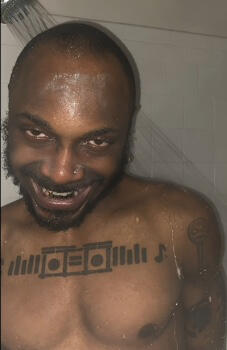 Words cant describe how Awesome this Photo is. Something about his face and him being under the shower head makes this quite the terrifying photo. Also something about the shower-head is a bit freaky too. I bet the water pressure is great. His tattoos are pretty neat and he looks very fit. I'm honestly wondering WHO took this photo. Like, there were some videos where this guy got naked on camera in which I assume it was his friend recording, so maybe it's them. Or maybe he did take this photo himself. I can't stop looking at his teeth. He looks like my dad. And his Bald head. I'm not being mean I think this photo is so so neat. ANd I think I just noticed he has a septum peircing so that is really cool too. His forehead is giant but at the same time a lot of people have giant fore heads and its a sign of a very very smart person becuase their brain is bigger. He looks very angry. What if the water he was using was really cold like he was trying to get the perfect photo for hours so he just stood there. His beard looks kinda cool and scruffy.. Also before you ask Yes I have recreated this photo but it looks much worse and I cannot replicate the beauty of the Original. I bet he could beat me up it's scary what you can get away with on the internet, I would never say this to his face but thats the beauty of the Internet, we can be as Anonymous as we want. I have a Cat named Waffles whos 9 years old anjd I love her so much